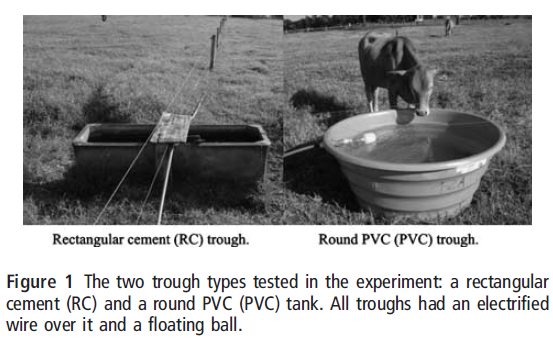 The latter-favoured trough had the same dimensions of the most utilized trough in this experiment. This thus indicates that pasture-based bovine, dairy cows and beef heifers prefer troughs of larger water surfaces, quite like the PVC trough of this study.