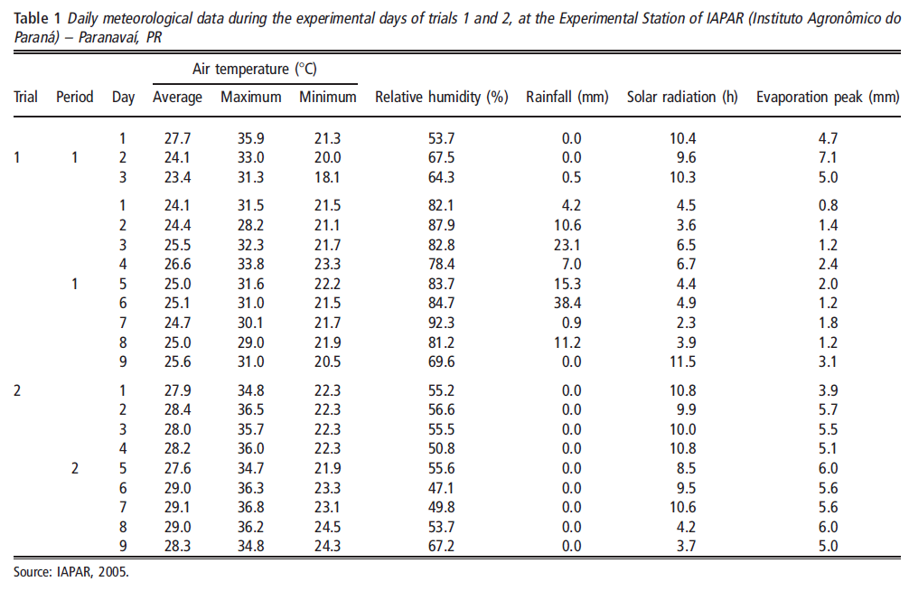 We acknowledge CAPES for sponsoring Paula Coimbra. We are grateful to the students that helped collect data, especially Alexandra Dalpasquale, Joa˜o H. Costa and Juliana Faveri. We also acknowledge IAPAR for allowing the research to take place in Paranavaı´’s experimental station.
